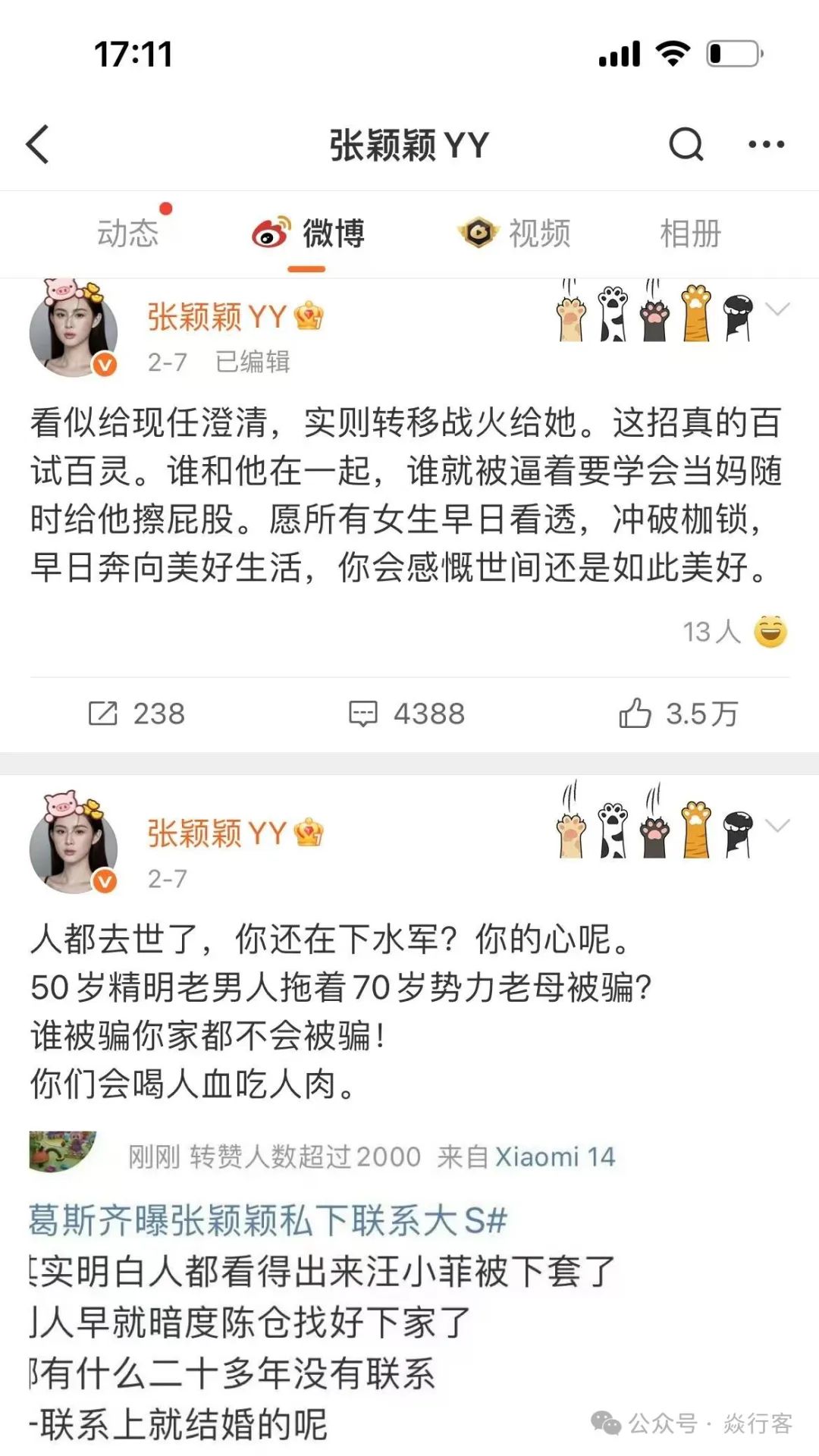 几乎同时,汪小菲前任张颖颖也下场,攻击汪小菲张兰母子,也对马筱梅身材、家庭背景等进行攻击,言语犀利。