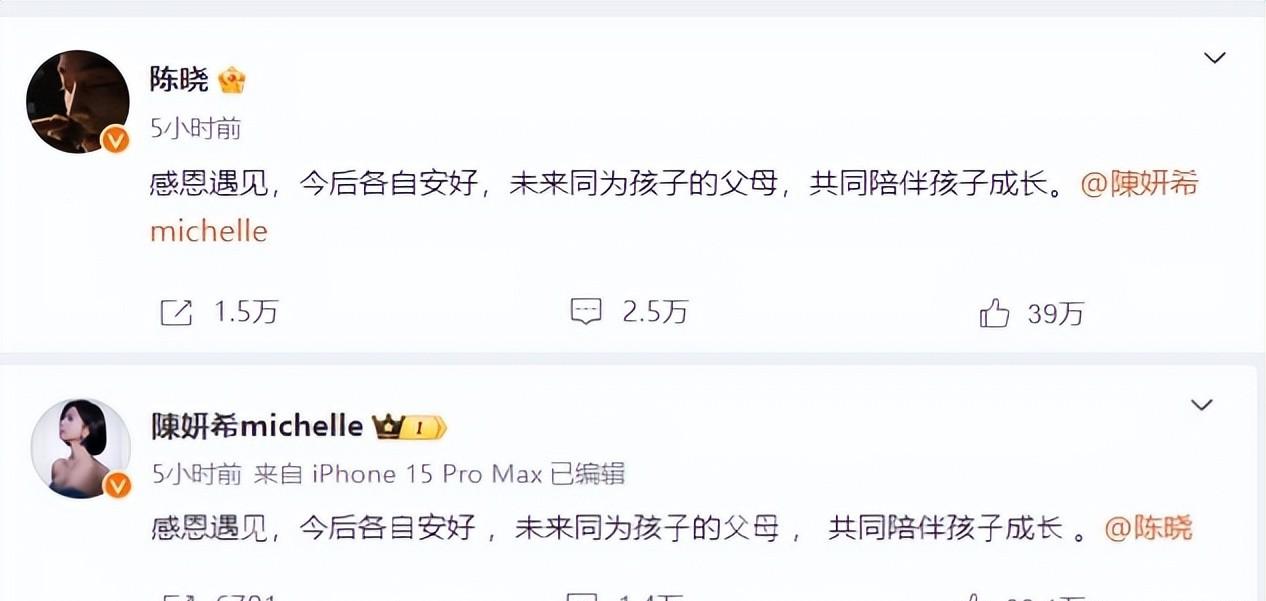 这次离婚的官宣方式也引起了我的注意,两个人选择在同一时间发布声明,看起来是经过商量的,这种做法显得比较理智和体面,避免了一方单方面宣布离婚而引发的猜测和争议,也给了双方粉丝一个缓冲的时间,让大家能够慢慢接受这个事实。