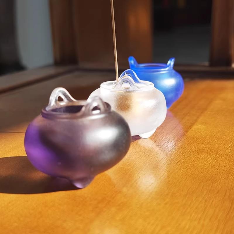 随着时间的推移,朝代更迭,鼎的角色也在不断变化。从最初作为立国重器,代表着至高无上的权力,到后来走进寻常百姓的生活,成为一种文化符号,再到寺庙中作为焚香的容器,承载着人们的信仰与祈愿 。琉璃三足鼎正是在这样的历史脉络中诞生,它继承了传统三足鼎的造型精髓,又融入了琉璃这一充满现代艺术感的材质,既有着历史的厚重感,又不失现代的灵动与精致,宛如一座桥梁,连接着过去与现在,让古老的鼎文化在新时代焕发出新的生机与活力。