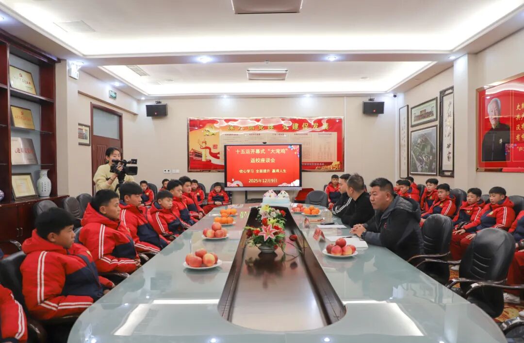 12月9日下午,一场特别的返校座谈会在鹅坡武校举行,刚刚圆满完成“大湾鸡”演出任务的学生们齐聚一堂,分享这段独特经历带来的成长与感悟。鹅坡武校书记、执行校长常福晓出席会议。