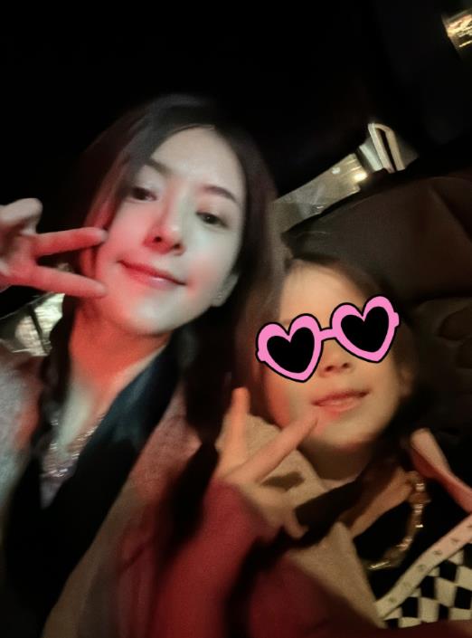 再看两个女儿,跟在方媛身边的是9岁大女儿,身后父母带着的则是5岁小女儿。两姐妹和妈妈一样披散着头发,而且,身形和妈妈一样偏瘦。穿着同款外套和黑色长裤的两姐妹打扮的就像双胞胎一般。