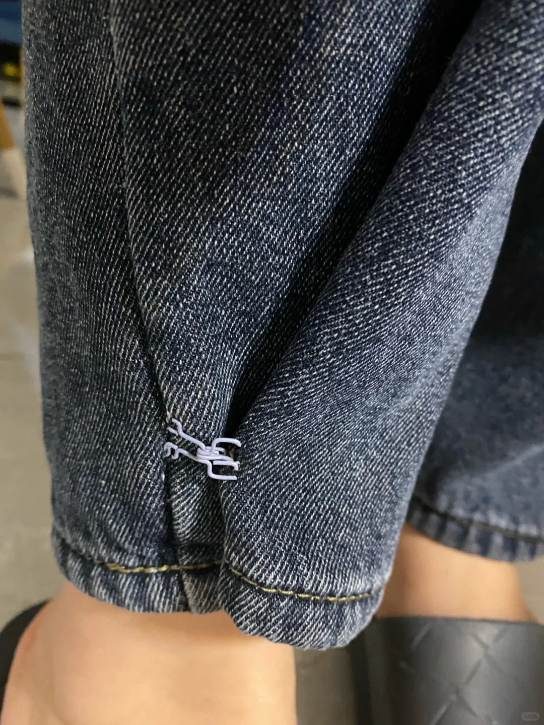 只需要将就内衣上面的延长扣缝补在裤腿合适的位置,这样穿腻了的阔腿裤就变成一条新的萝卜裤了。