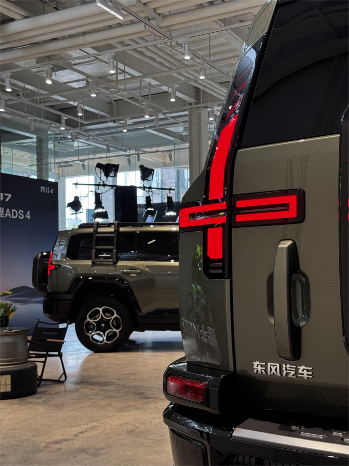 车身尾部,据工作人员介绍,猛士M817的尾灯以火箭发射为设计灵感,298颗超红LED搭配超24.6万个激光精细雕刻,每一次点亮,呈现出的深红色光幕宛如将划破深邃夜空。