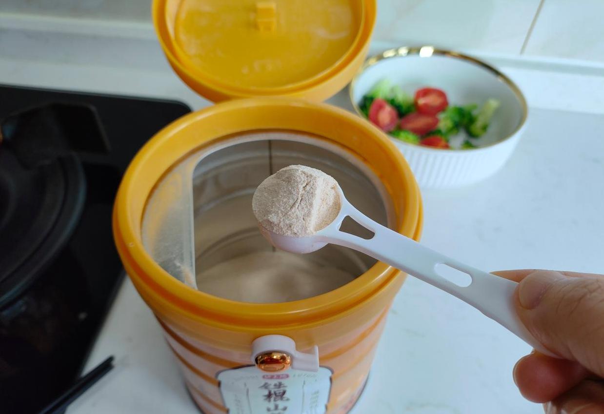 每天早晨,李阿姨会小火加热牛奶,看到锅边起泡后关火,这时却不直接加入山药粉,而是先舀三勺到杯中,用少许牛奶搅拌。