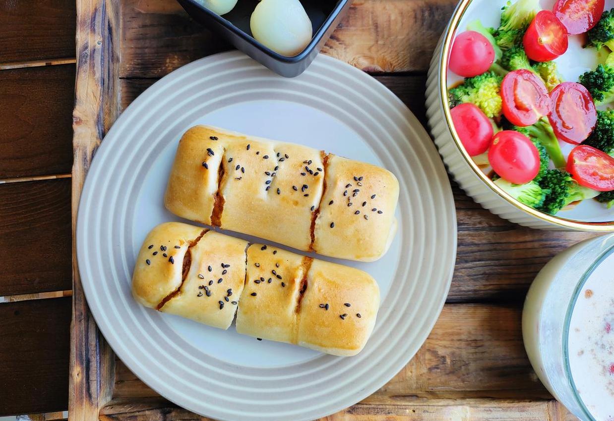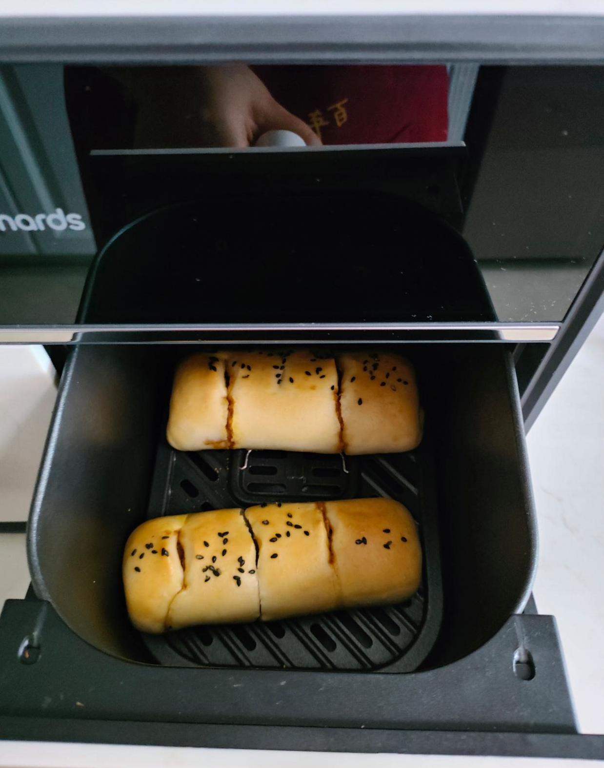 只要前一天晚上揉好发面面团,加上自己喜欢的各种馅料,用空气炸锅加热几分钟,就能得到香气扑鼻的早餐。
