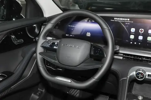 内饰也有豪华感,12.3 英寸中控屏和全液晶仪表连在一起,看着特别大气,操作也流畅;水晶电子挡把,摸起来有质感,换挡也顺手;还有氛围灯,能根据音乐变色,晚上开车特别有氛围感。