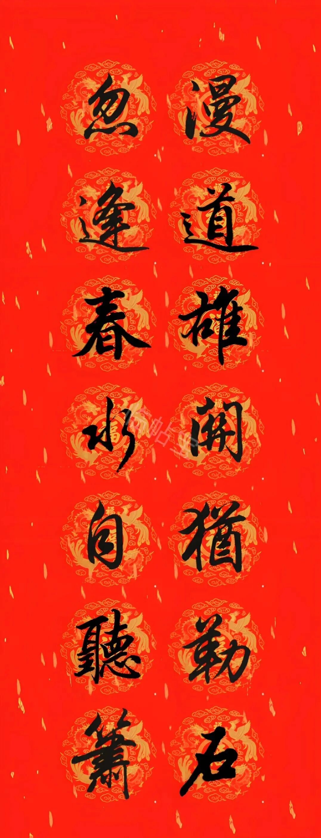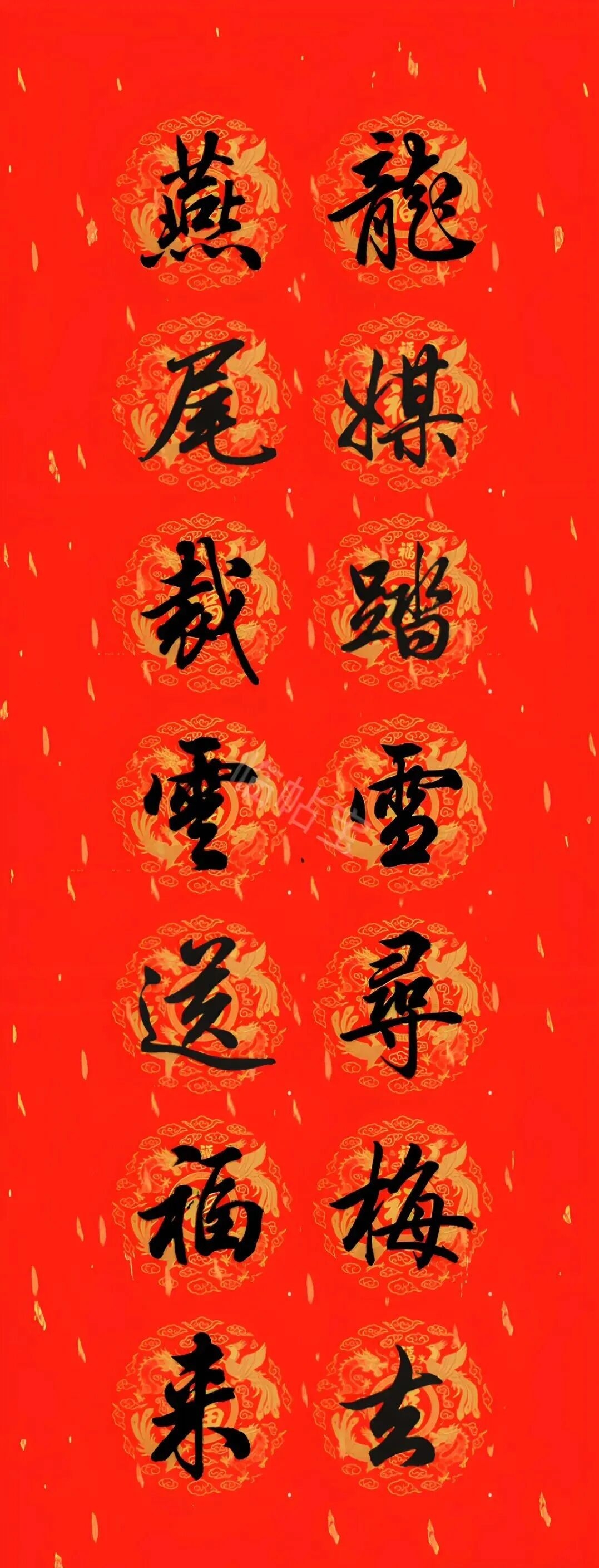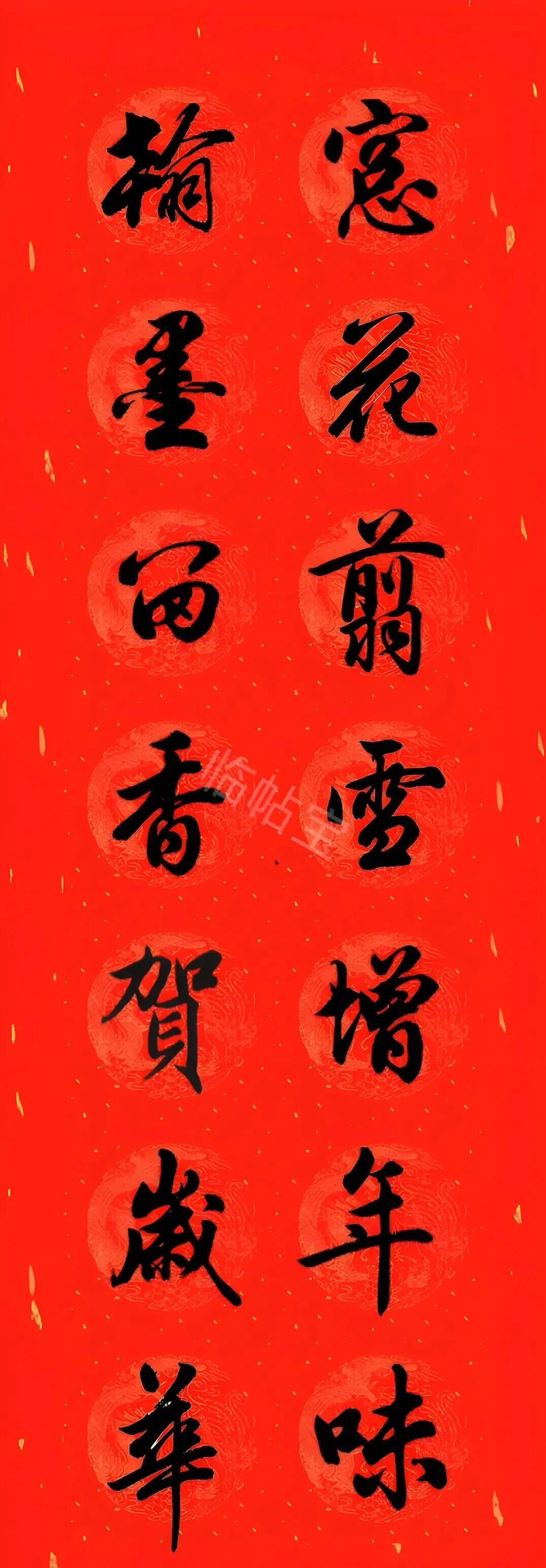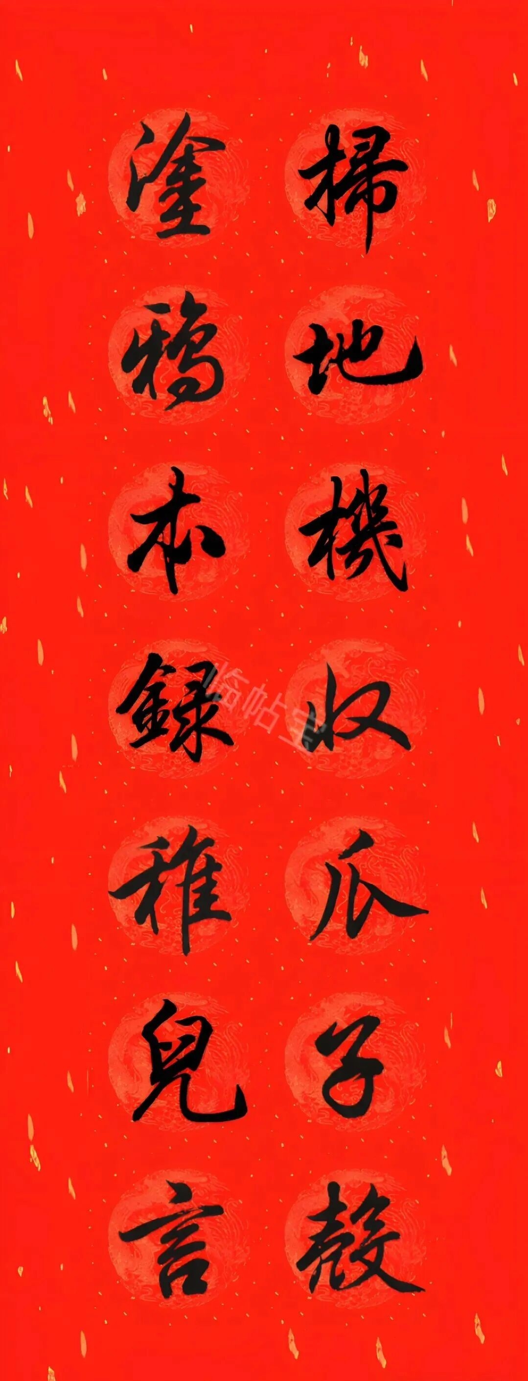 2026丙午马年,田英章行书集字春联:骏骨丰筋,行笔如走马,联句含马意,红纸金粉,九幅成组,宜贴宜藏,提前练写,年味与墨香并驰。