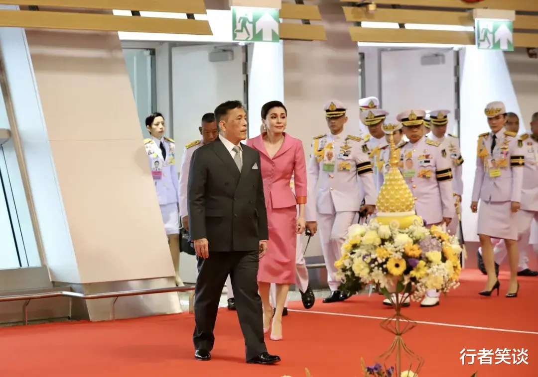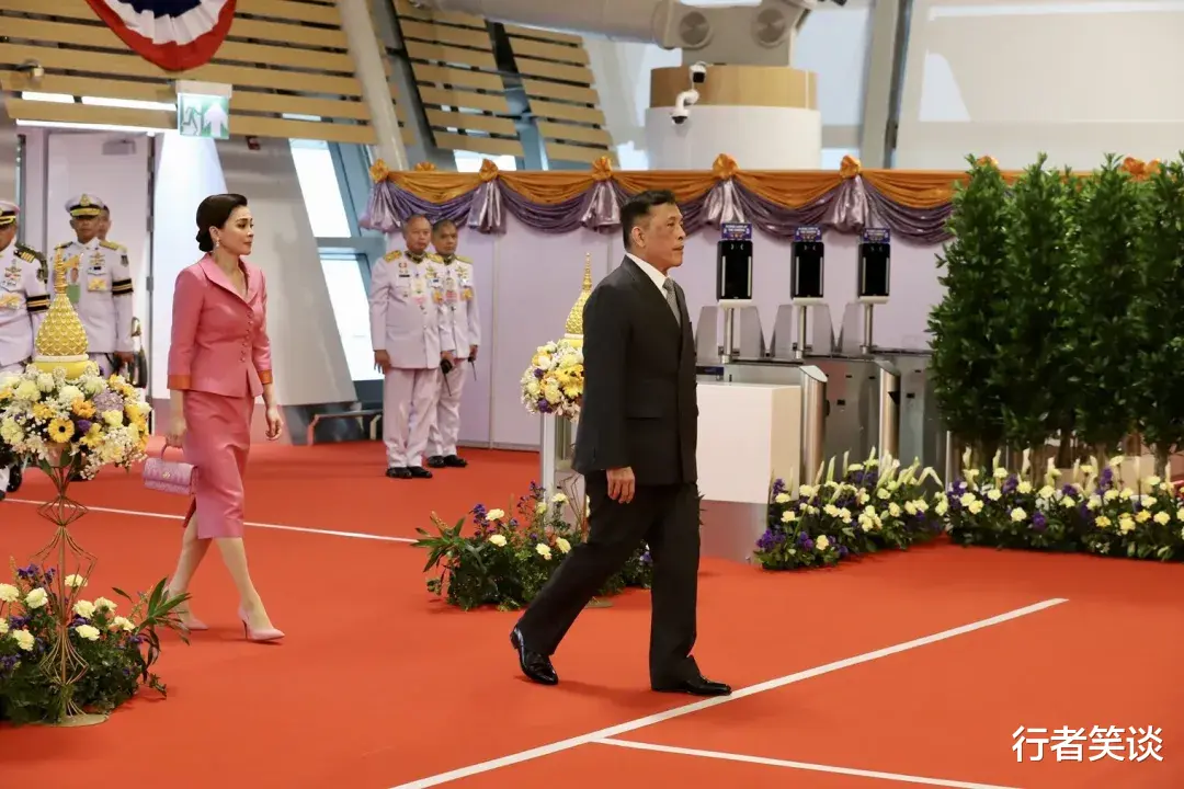 前不久,苏提达王后陪同泰王玛哈在素万那普机场为第二座航站楼揭幕剪彩,全程黑着一张脸,把自己那身春意盎然的桃粉套装都衬得透着寒气!