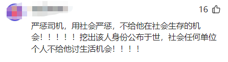 也有网友建议要严惩司机,用社会严惩,不给他在社会生存的机会!挖出该人身份公布于世,社会任何单位个人不给他讨生活机会。