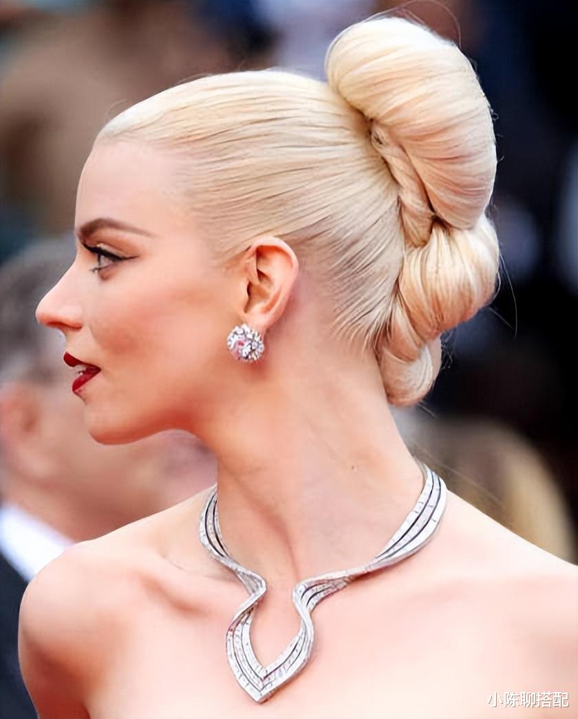 这种盘发的光感,与真丝连衣裙搭配,可以传递出高级感。连衣裙真丝材质,也带有光泽度,刚好和光泽感盘发形成呼应。