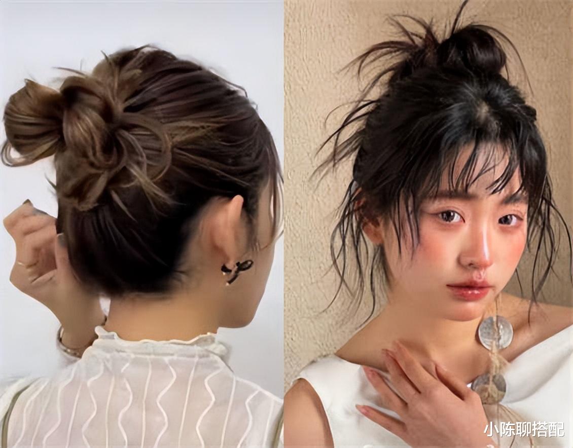 丸子头,可以设计得慵懒点一些,这样的效果真是减龄第一名。扎丸子头的时候,不要扎得太紧,要松动一点。