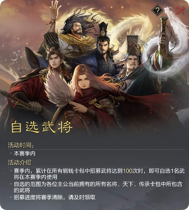 这种保底在SLG游戏界堪称逆天,无数核心神将,只要有自选武将机会一律都能直接兑换,正常SLG游戏轻易不敢给,但在率土青春服,铜钱抽卡100次,无论是什么结果,一律都送1次自选武将机会!