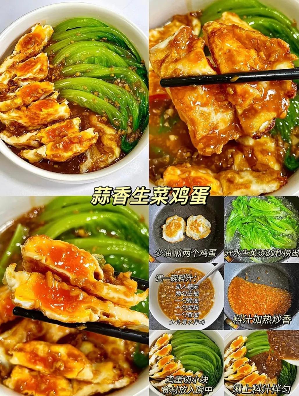 食材:生菜 200g、鸡蛋 2 个、蒜末 1 勺