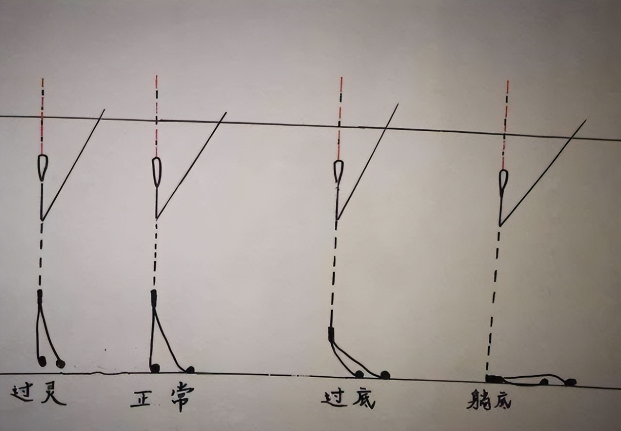 如果调钓不恰当,钩饵离底过多或者双饵躺底,甚至铅坠到底,都会导致浮漂出现的信号不真实。双饵离底就是俗称的“钓浮”,无特殊情形,鱼儿如果在底层活动就找不到饵料;双饵躺底或铅坠到底,就是我们说的“钓钝”,遇到轻口鱼,往往都是饵料被吃光了,浮漂也难出现信号,或者只有轻微的信号,提竿也很难中鱼。