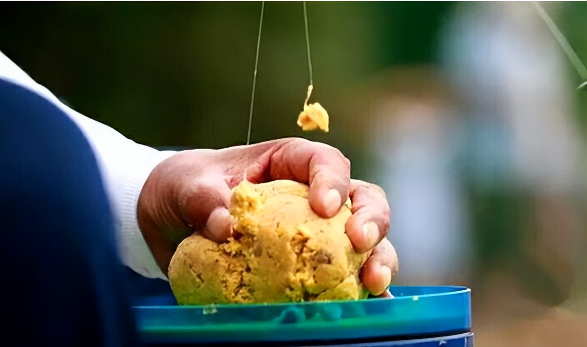 三、饵料使用不当开饵和挂饵也是一门学问,既要针对不同对象鱼选择合适味型的饵料,又要保证附钩性好,松散的饵料挂钩入水就脱落,或者鱼儿轻轻一碰就掉落,也只会让浮漂出现乱象,拉丝粉的添加一定要控制好比例。