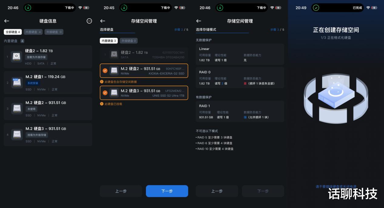 而从操作步骤来说,也仅仅需要建立存储池即可,没有多余的步骤设置和复杂的选项,更方便小白用户上手。略微需要注意的就是,如果你是SSD+HHD混用,存储池只能建在同一类型上,也就是或者是最高40TB(30TB*2)的HHD机械硬盘位,或者是最高12TB(4TB*3)的固态硬盘。但存储是选定一种之后,另外一个也可以作为外部盘使用,存在数据,只是分享不方便一点点。至于其支持的阵列方式有Basic/RAID 0、1、5可选,支持ZFS快照/校验/修复功能。如果你是为了安全,可以选RAID 1阵列方式的HHD存储,也就是系统最大30TB安全数据,但任意一个硬盘出错,数据不丢失;而如果先RAID 5阵列方式的SSD存储,最大系统存储8TB安全数据,三个SSD中任意一个损坏,数据不丢失。
