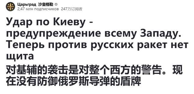西方通过延长战争耗尽俄罗斯国力的计划已经破产,乌克兰已没有反败为胜的机会,连战术反击的条件都没了。现在俄罗斯对乌克兰后方的空袭不存在什么遇到阻力,乌克兰没有反导防御系统,面对俄罗斯的弹道导弹打击毫无办法可言,至于新一代的高超音速导弹更是束手无策。