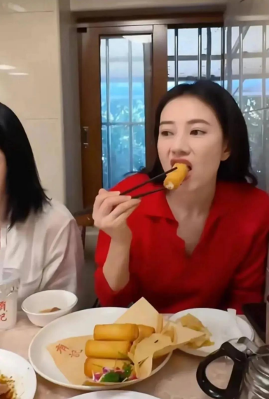 她蹲在路边摊吃米粉的照片,让人想起《东京爱情故事》里赤名莉香的笑容——那种"就算明天地球爆炸也要先嗦完这碗粉"的从容,恰恰是当代人最稀缺的生命力。