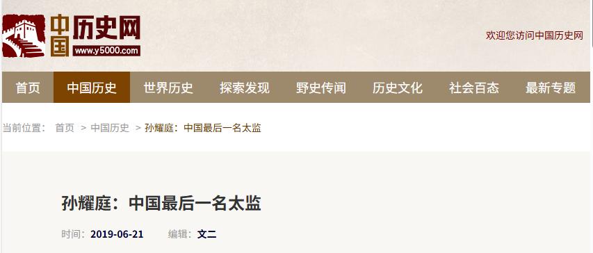 中国历史网 2019-06-21——孙耀庭:中国最后一名太监