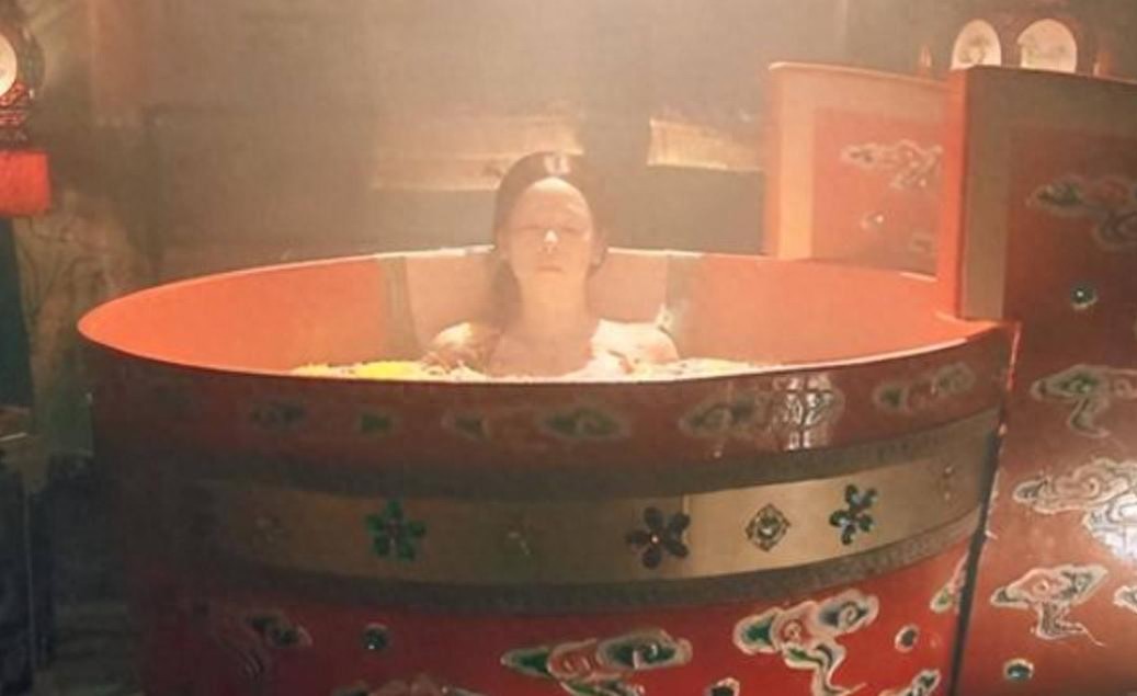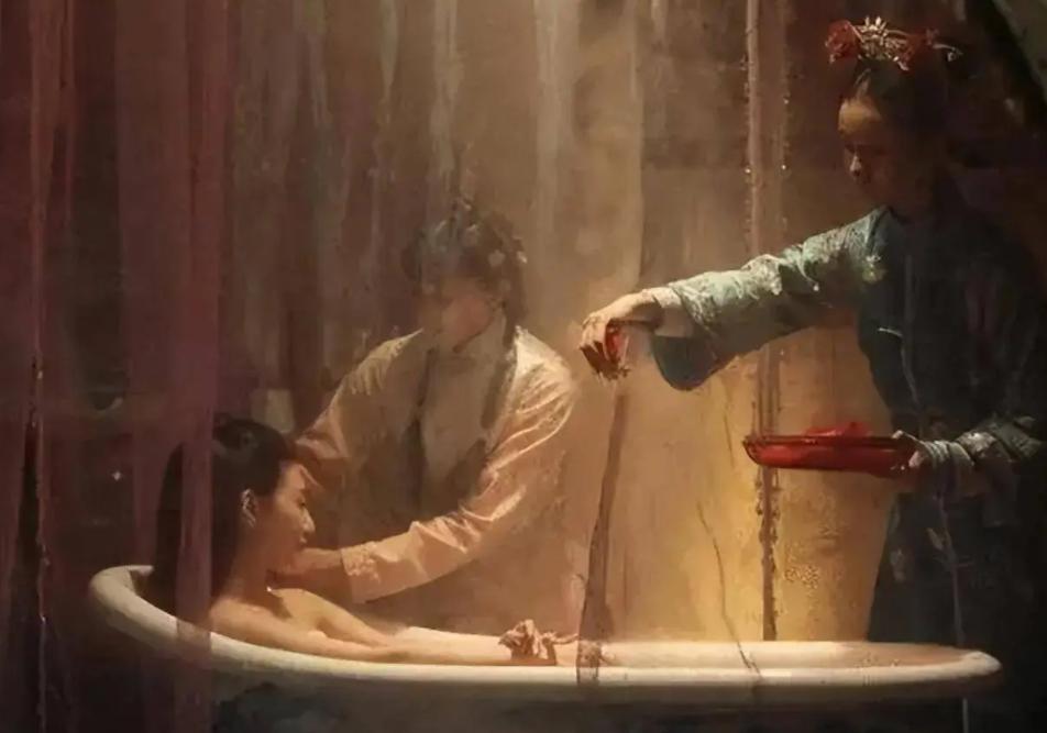 所以,从脱衣服、进浴盆,到擦身子的每一个角落,再到穿上衣服,全程都是宫女和太监流水线一样伺候着。