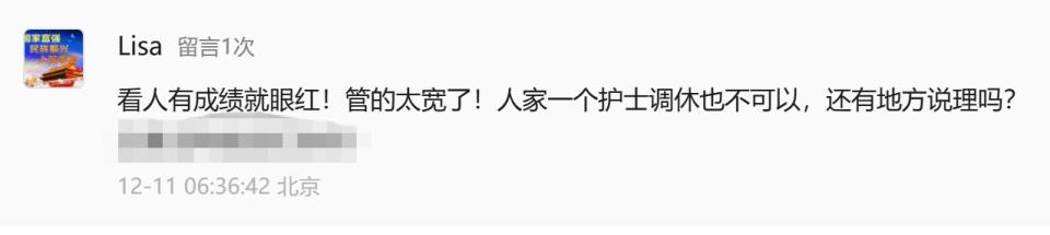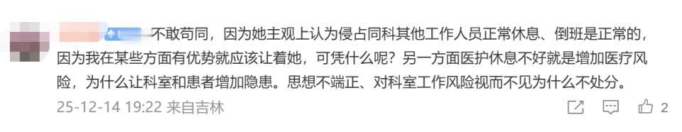 记者于12月13日晚10时30分找到张水华所在科室护士长,该护士长表示,没有对张水华特殊照顾,也不会因此针对她,“我们现在对她也是正常排班”。