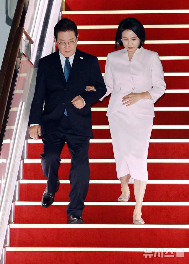 当地时间8月28日,韩国总统李在明和夫人金惠景结束了对日本和美国的访问,回到了韩国。抵达机场,官员去迎接。经过了长途飞行,李在明看起来些许疲惫,但是韩国第一夫人金惠景,依然还是神采奕奕。