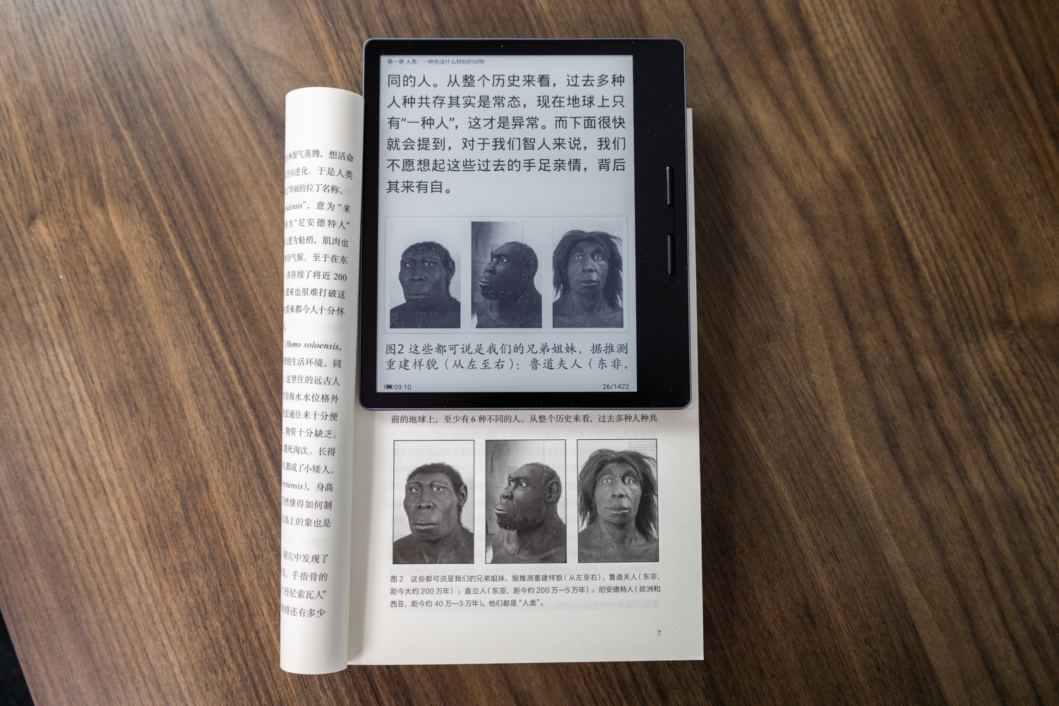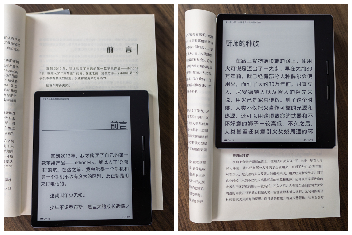 大小则对比一下畅销书《人类简史》,汉王Clear内就有《人类简史》的免费阅读资源,仅有实体书的几十分之一厚度和重量,就可以轻松阅读。