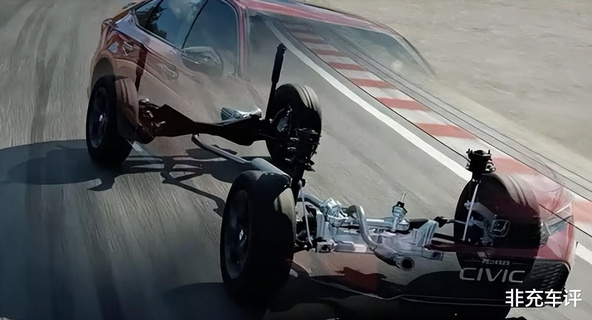 聊到底盘,这一代思域的精髓还在。前麦弗逊,后多连杆显得很普通,调校却有点讲究。