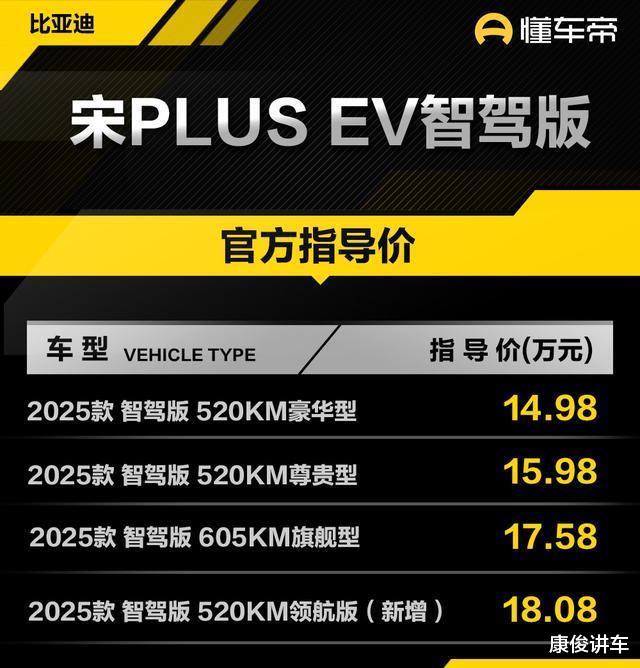 “18.08万?这价格是真香警告,还是智商税收割机?”比亚迪宋PLUS EV智驾版新款一上市,这价格就跟扔了个炸弹似的,直接在车友群里炸开了锅。