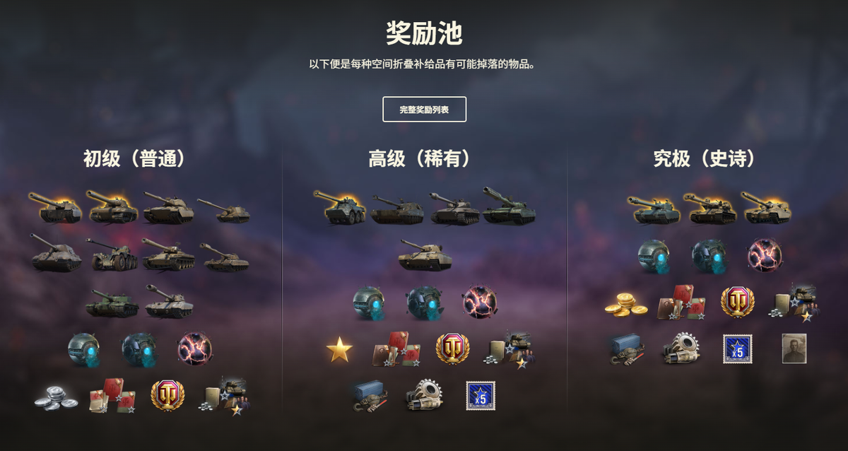 “空间折叠补给品”分为初级、高级以及究极三种宝箱,其中甚至包含了五台全新坦克!这些坦克不仅特色鲜明,同时也能给玩家带来不同的战术体验。