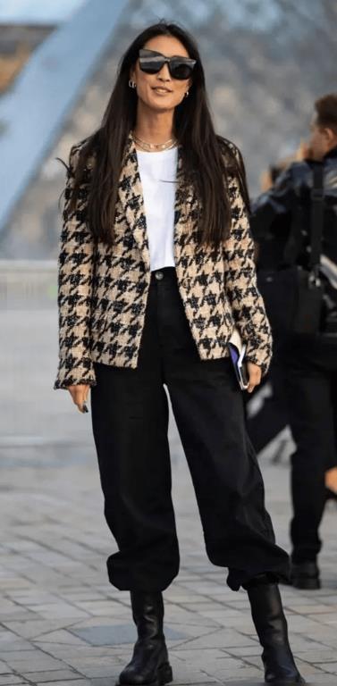 当然,除了短靴和长靴之外,还有中筒靴,这种靴子有着很强的保护性,靴筒高度恰好合适,能够很好的修饰腿型,遮挡住腿部的赘肉,再配合宽松的裤子, 比如九分的直筒裤和阔腿裤,都可以呈现出帅气风格,无论是配合小脚裤还是宽松的裤子都不违和。