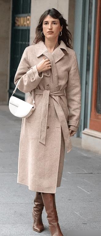 及膝长靴,既保暖又时髦,可以试着用它搭配半身裙和大衣, 优雅大方,还能显腿长,配合高跟设计的靴子更显气质,记得在选择的时候,筒围要宽松,毕竟冬天大家都会穿厚实的裤子或者长裙,所以靴筒宽一点就可以满足我们的穿搭需求。
