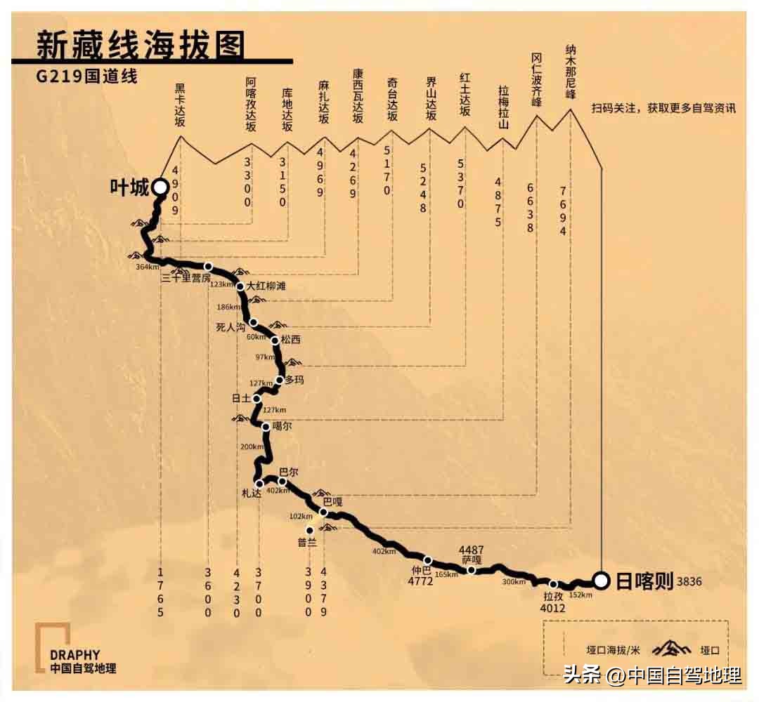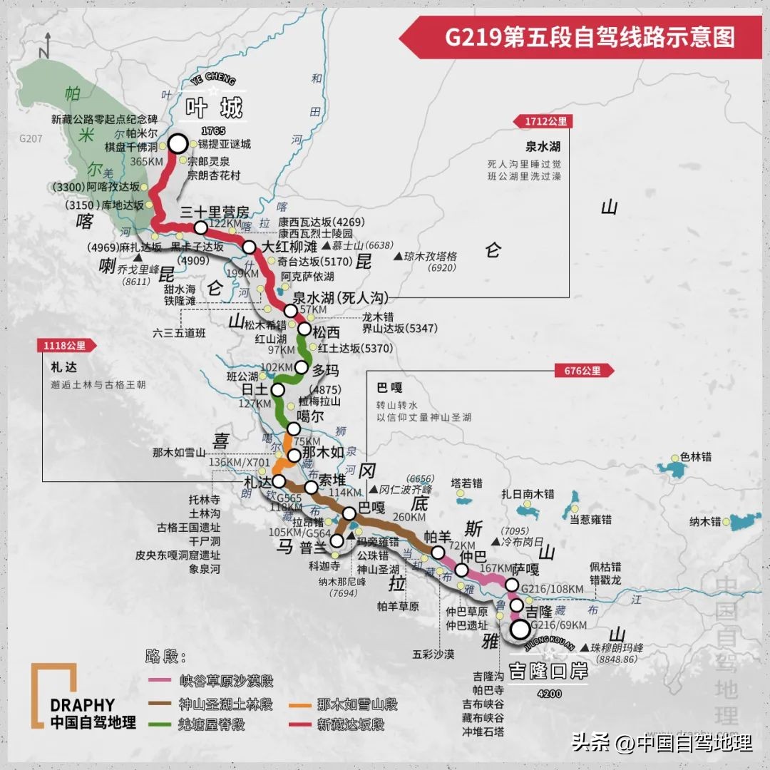 G219第五段即新藏公路自驾线路示意图,制图@《中国自驾地理》