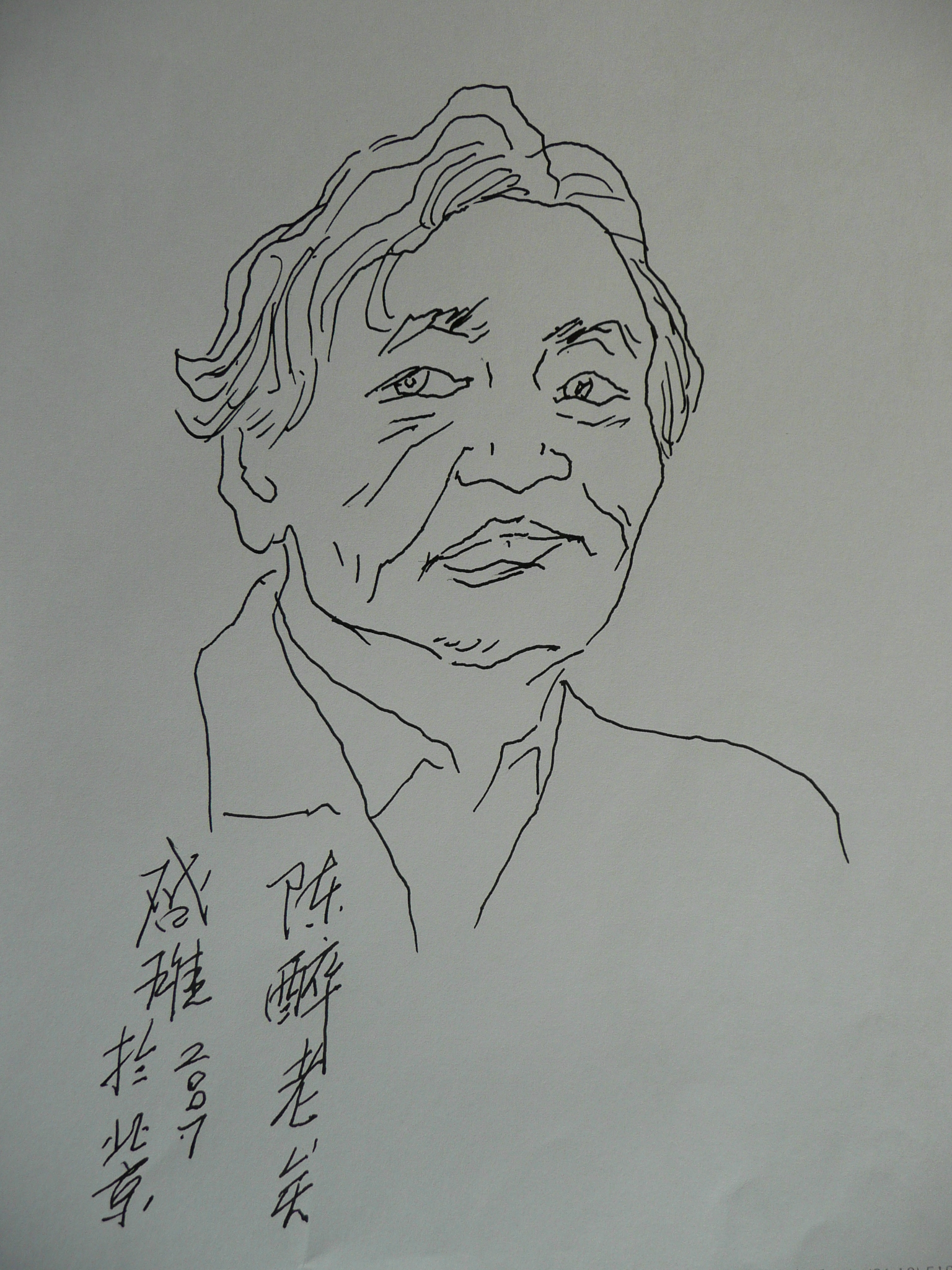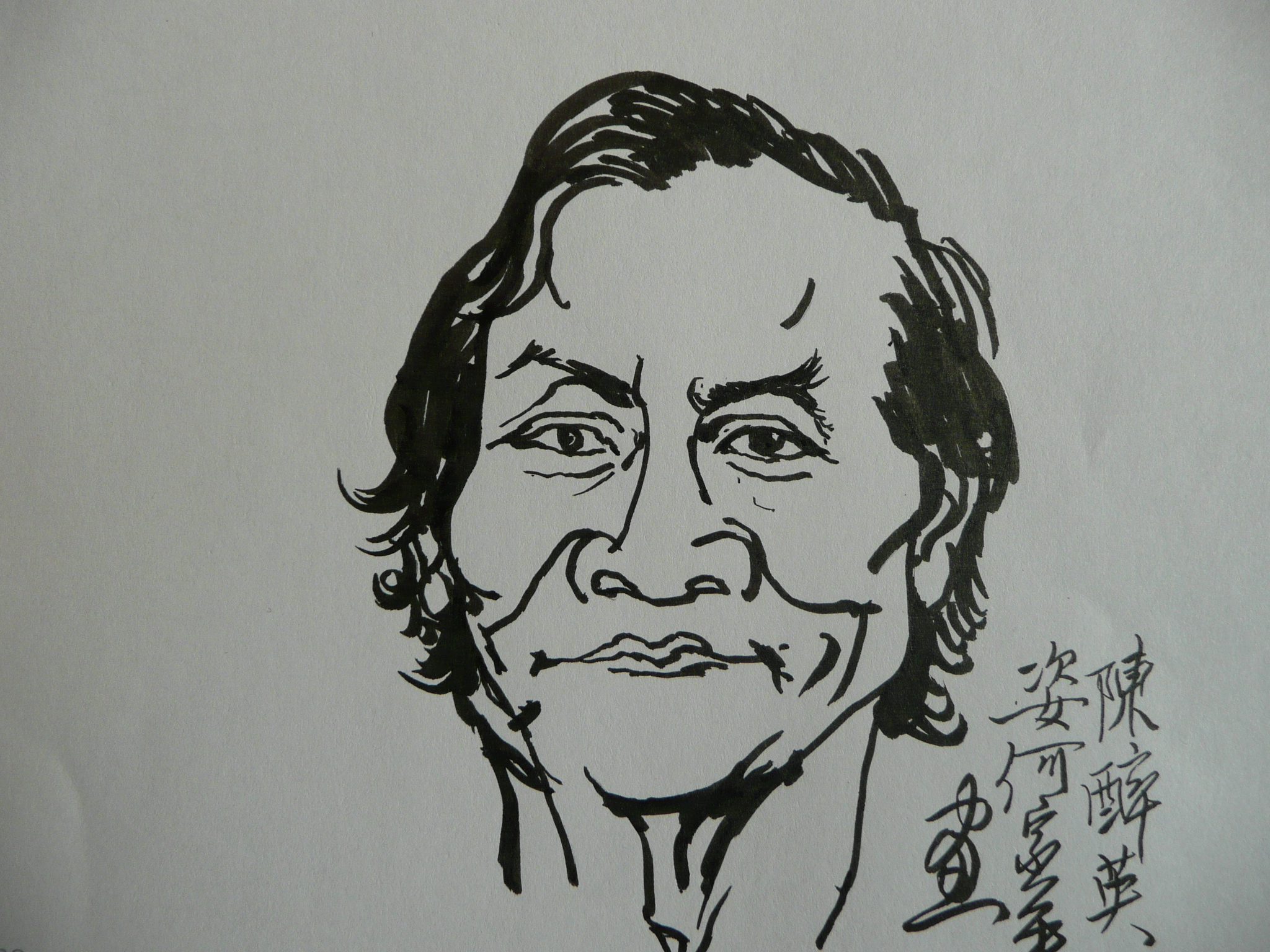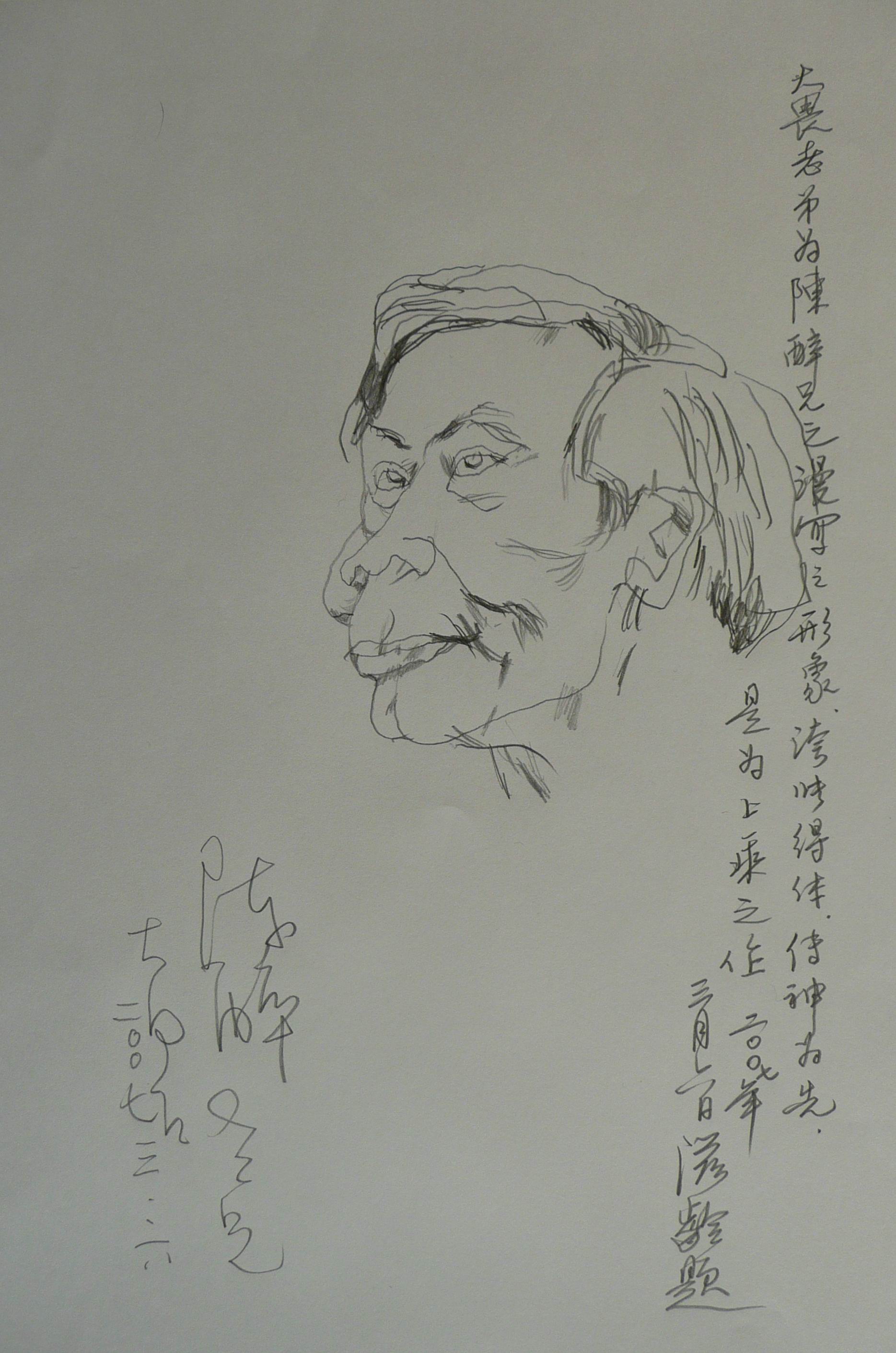 陈醉在文化界有很多朋友,有很多都是各自领域的杰出人物,也就是俗话说的名人。在他的散文随笔集《信步随风》中可以读到不少他与他们交往的趣闻轶事。不过那是文字记载的。今天我们奉献一组形象的材料——陈醉的画像,这些都是朋友们对陈醉的印象、反应。有庄有谐,耐人寻味,但笔底流露出来的都是一片真情!