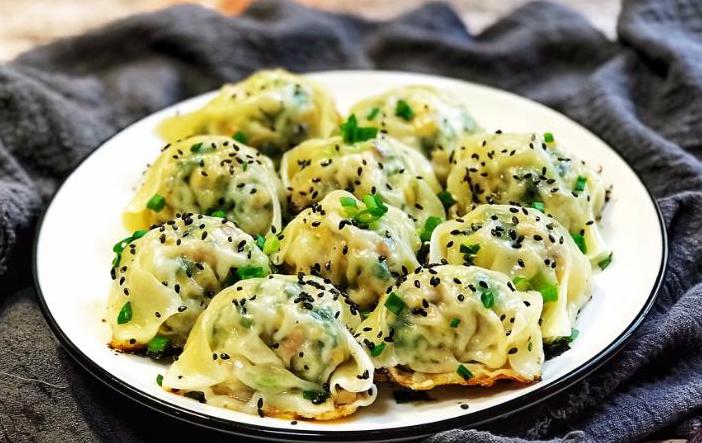 先在不粘锅里加一点油,把馄饨平铺,小火煎几分钟,再加半碗水盖上焖煮。
