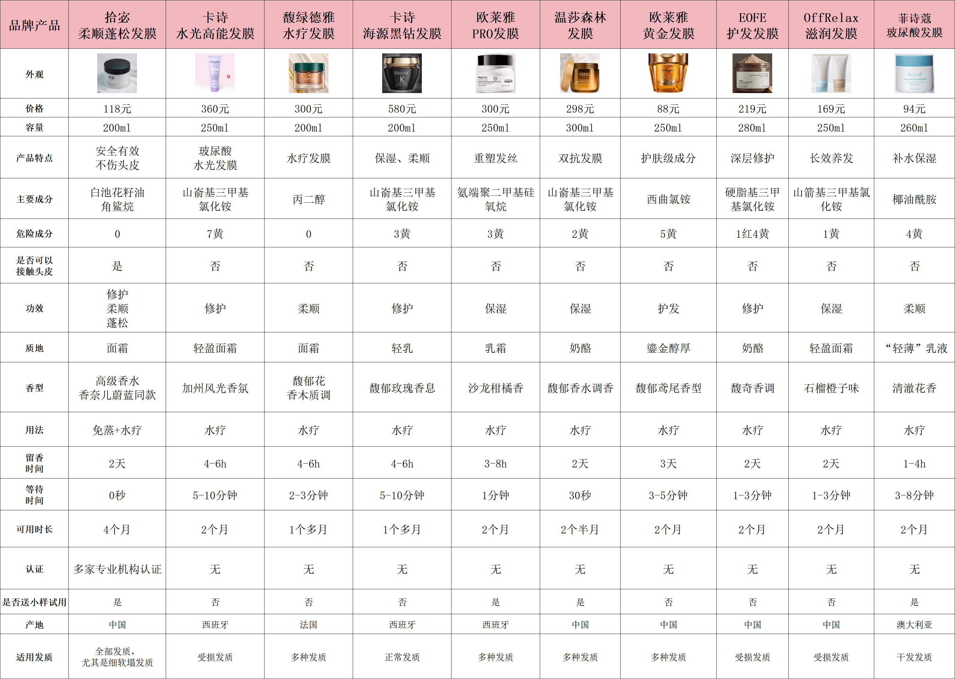 (这是本次测评发膜产品的数据对比,以便大家能够对它们有一个基本的了解)
