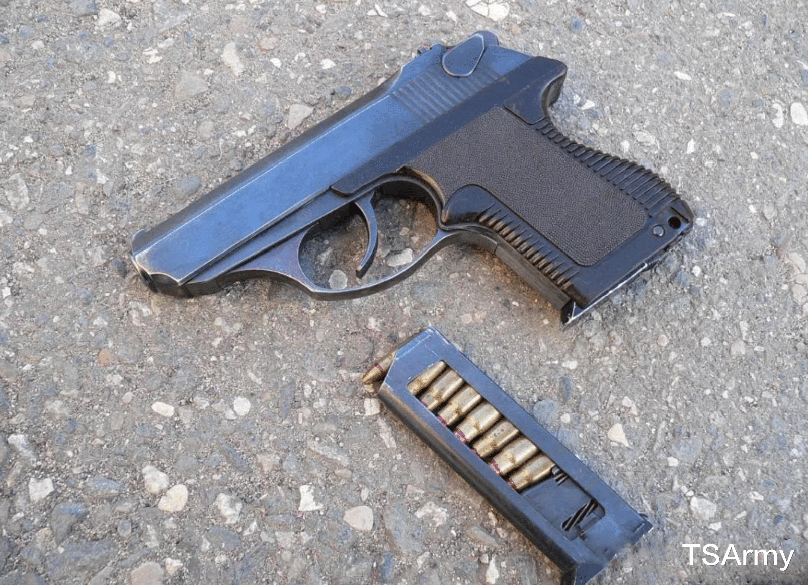所使用的弹药是特制的,为9×18毫米亚音速手枪弹,也是配备8发单排弹匣,不过安装消音器时,该枪的射程可能达不到50米,但在上世纪80年代,装备苏联特种兵用来执行近距离作战任务还是够用的,现如今这种手枪仍有少部分被现役俄军特种兵使用。