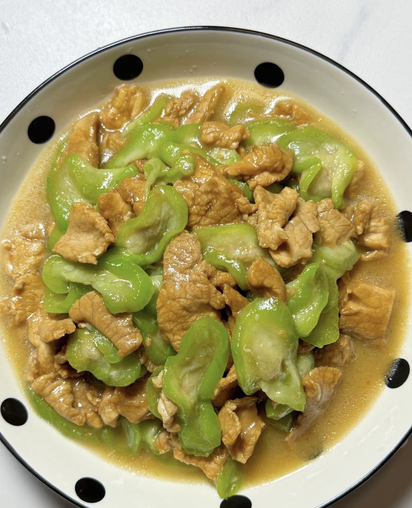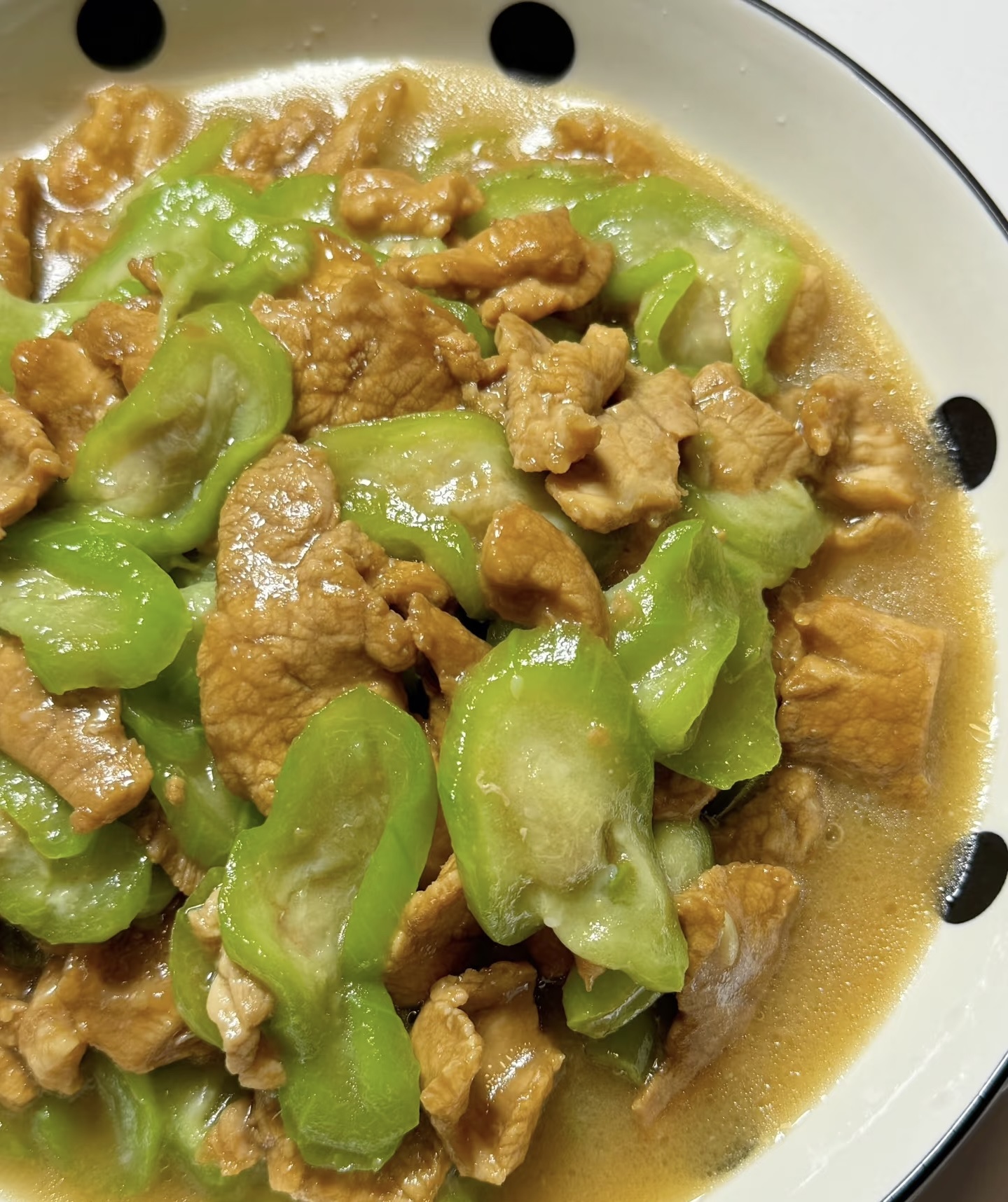 将炒好的丝瓜炒瘦肉盛入盘中,这道菜色泽清新,丝瓜的翠绿与瘦肉的嫩白相映成趣,香气扑鼻。无论是搭配米饭还是面条,都能带来一份温馨和满足。
