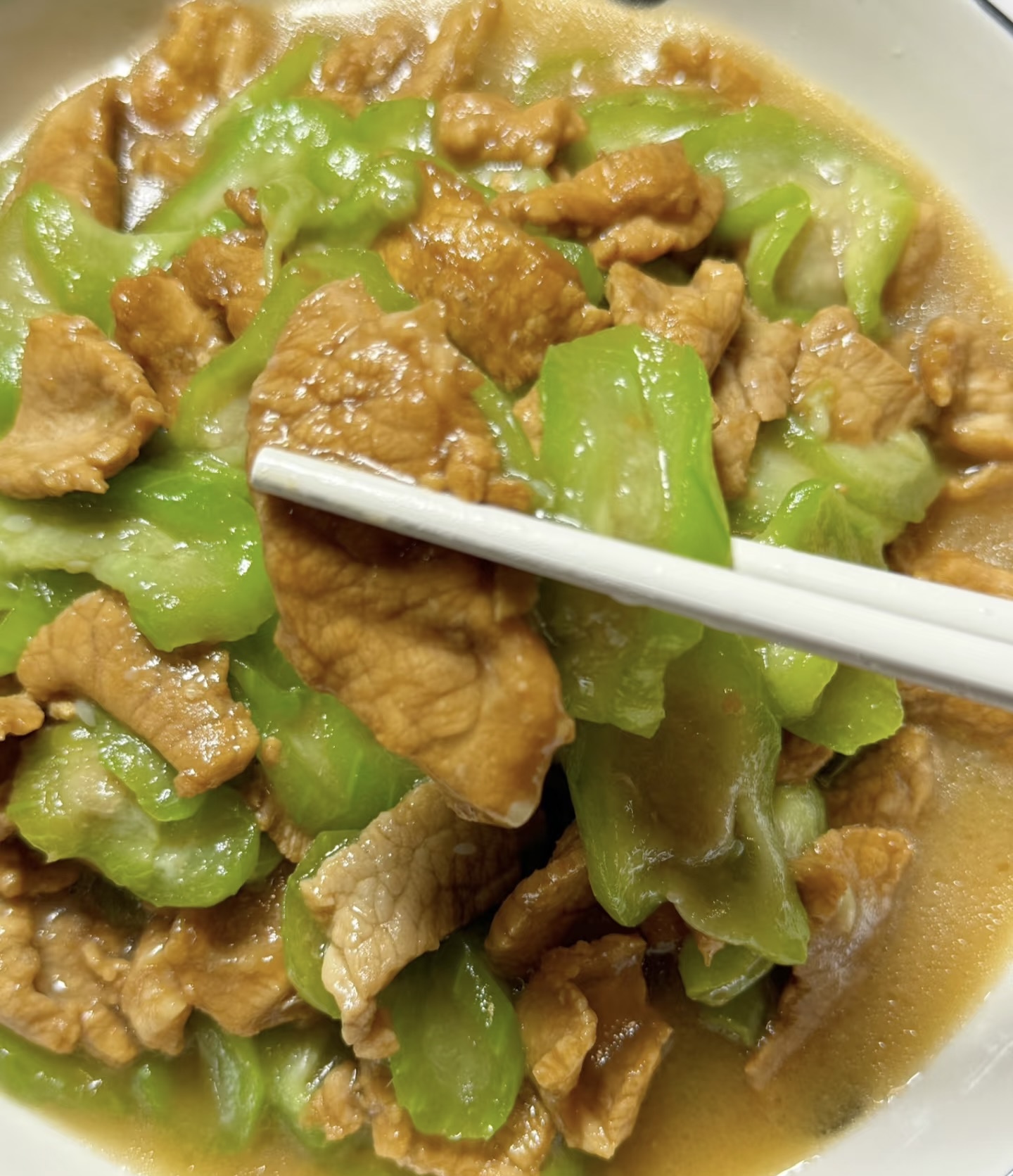 7. 丝瓜炒瘦肉可以搭配一碗清汤,作为一顿简单而营养的餐食。