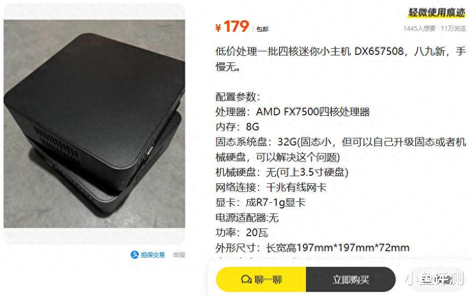 最近存储产品价格一路飙升,新硬盘动不动就三四百,而不少朋友都转去了二手鱼,想悄悄淘点便宜又好用的主机。看看我今天刷到的这款AMD FX-7500四核小主机。别看它年纪不小,当年可是性能小钢炮,如今沦落到百元出头,但并没被时代完全淘汰。