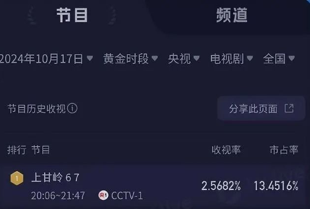 《上甘岭》收视领跑全国,说明观众对这类故事很买账。不过,网上吐槽演员表演的也不少,说明观众口味越来越挑剔了。