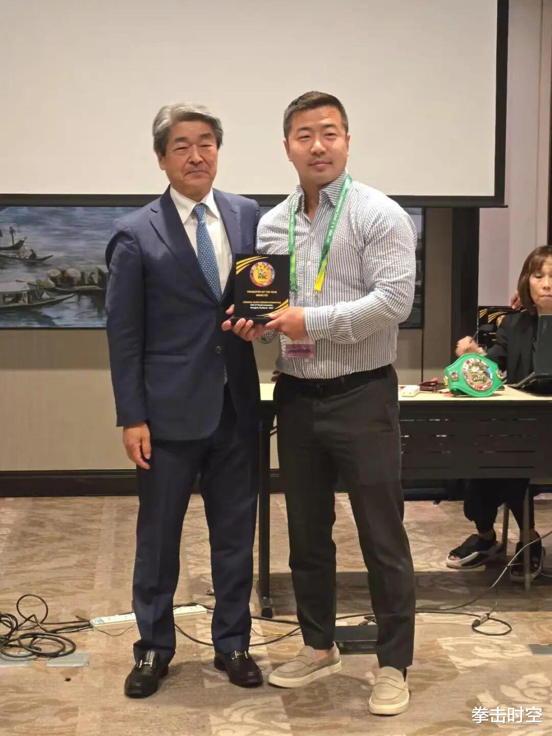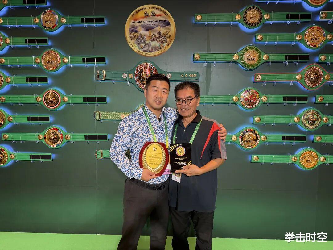 北京时间12月3日,沉寂了一段时间的中国职业拳击圈传来了振奋人心的消息——正在泰国曼谷举办的第63届WBC世界拳击年会&WBC泰拳第一届全球年会上,有一位中国人的身影闪现在全球各地的业内大腕面前,他从WBC主席苏莱曼先生与WBC远东联席主席张治国先生,以及OPBF理事长荻原先生手中分别接过了WBC远东年度最佳推广人、WBC-OPBF年度最佳推广人奖牌,是迄今为止极少数能够在同一届世界拳击年会上坐拥双料推广人国际大奖的中国人,这也是继2024年问鼎双料推广人国际大奖后再次蝉联这一至高殊荣,一举成为年会当晚最耀眼的亚洲拳击从业者之一,他就是当今中国最忙碌的职业拳击推广人,TKO王者拳击联队创始人、西安王者拳击俱乐部馆长王飞先生!