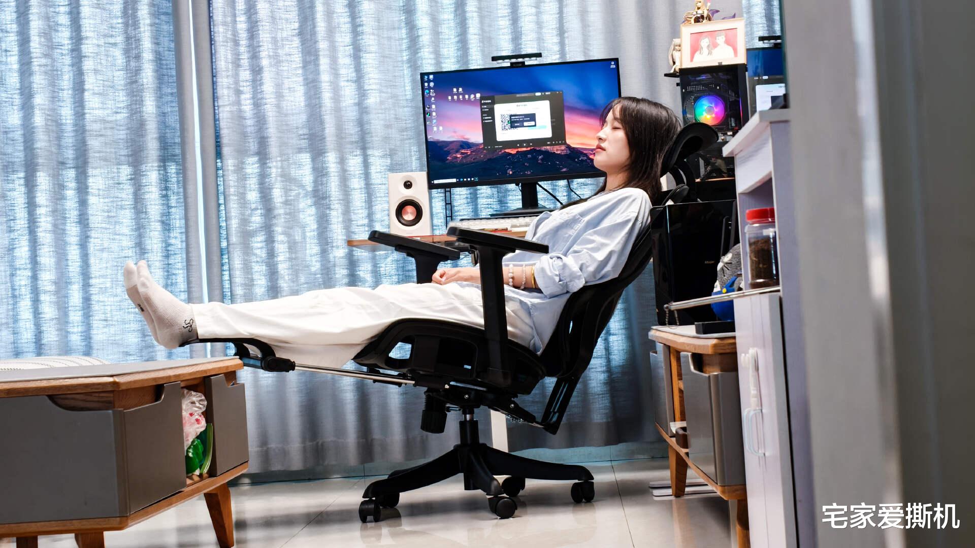 实测玩手机场景:将椅背调至 120°,头枕升高贴合颈椎,转身、俯身等动作时椅子随身体同步调整支撑,结束后腰部毫无僵硬感。