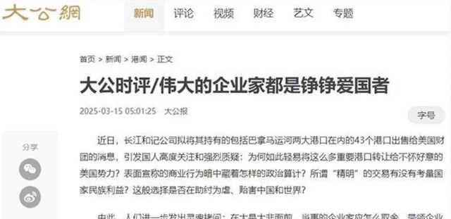 紧接着,便爆出李嘉诚出售港口给美,此事一出便让李嘉诚登上“风口浪尖”舆论不断。