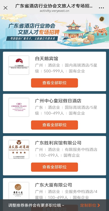 合作主要聚焦于广东省酒店行业协会旗下会员单位的招聘需求,由合作双方共建“文旅行业数字化招聘系统”,为协会旗下会员单位提供全方位的招聘支持: