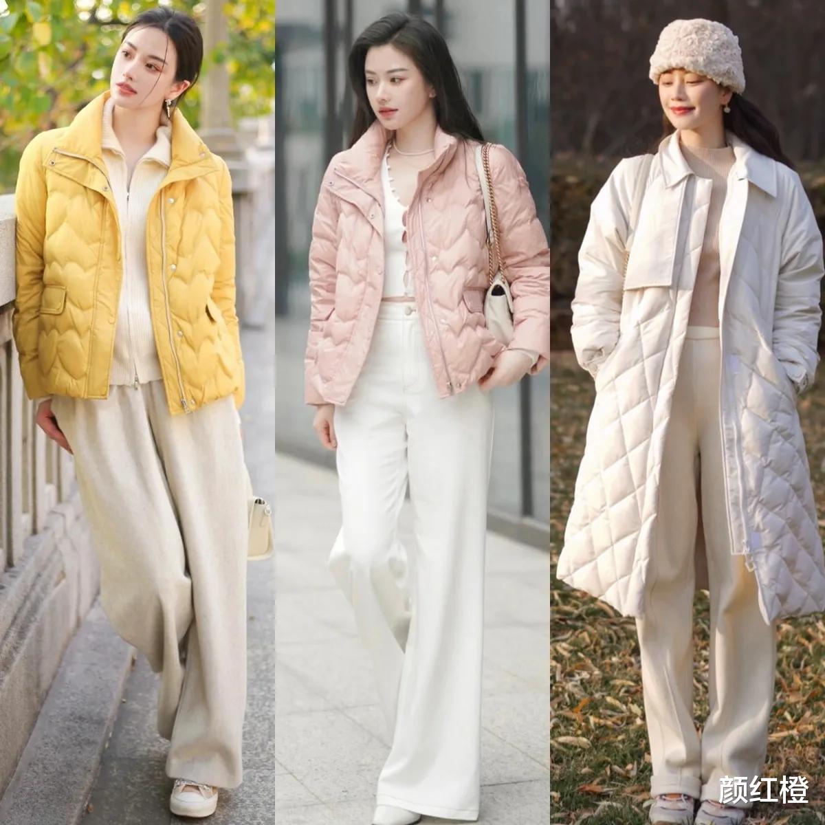 选择浅粉色的羽绒服,搭配上白色的直筒阔腿长裤,脚上穿了一双小白鞋,内搭一件白色的短款打底衫,就能很好的提升你的腰线,让身材比例更显高显瘦。