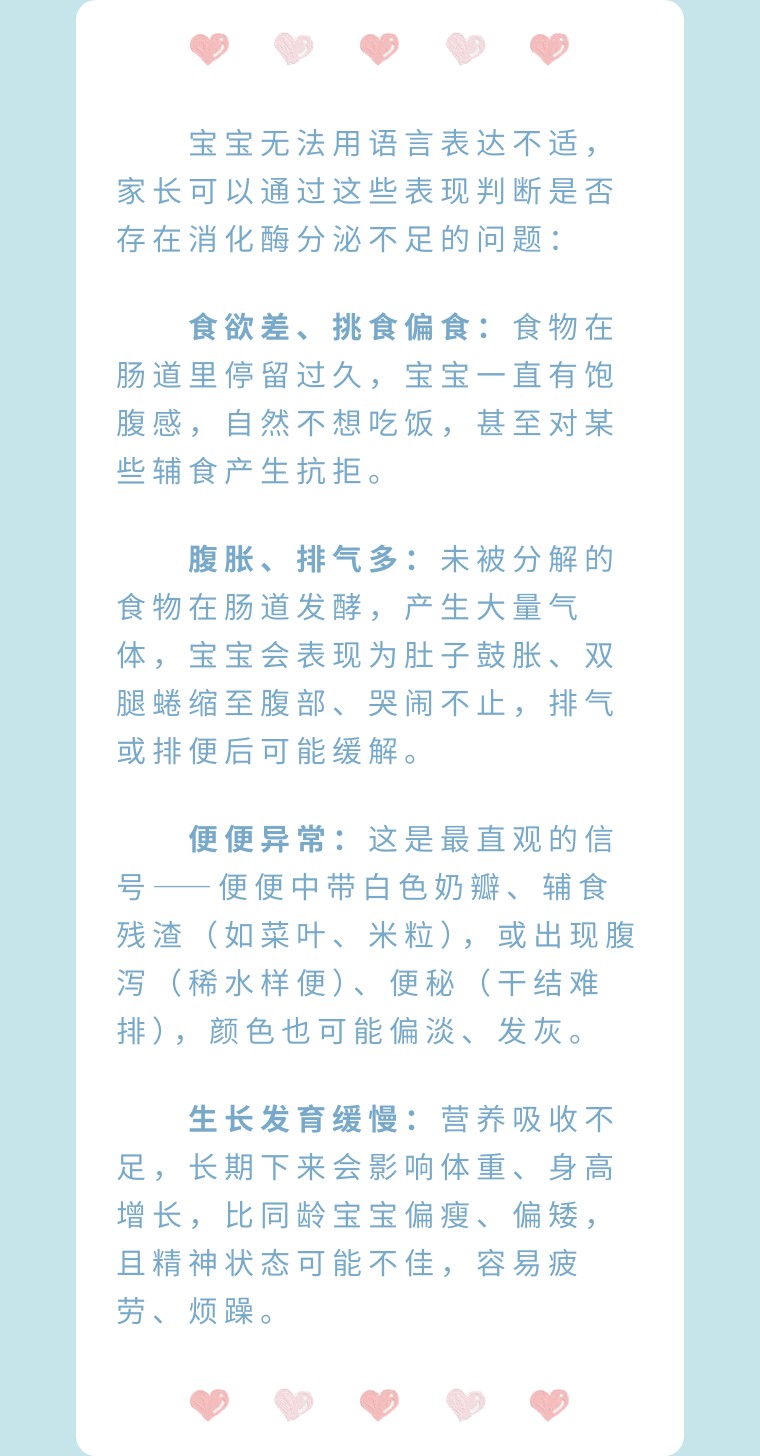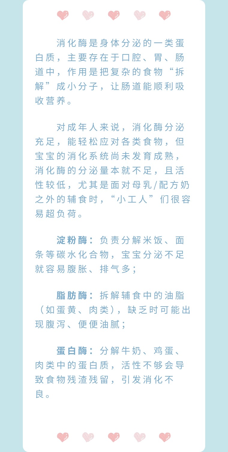 那些烦人的腹胀、腹泻和哭闹背后,可能藏着宝宝消化系统发出的“求救信号”。宝宝最近总是吐奶、肚子胀得像小鼓,大便也稀稀拉拉的……看着宝宝难受,全家人的心都揪了起来。这很可能是宝宝的消化系统在“告状”——消化酶不够用了。那么,消化酶到底是什么?宝宝为什么会缺乏?作为家长,我们能做些什么呢?