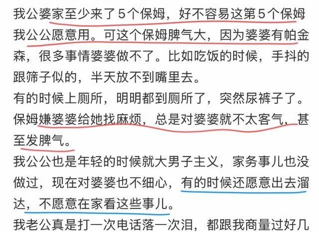 帕金森这病,真不是请个保姆就能摆平的事。定时吃药、夜里翻身、防跌倒、吞咽困难、大小便失禁……任何一个环节出问题,都可能惹出大事。她婆婆就是晚期患者,日常照护强度高得吓人。以前丈夫嘴上说着“我来负责”,结果一出事就指望丈母娘顶上。换保姆不如意,第一反应是:“要不然让你妈先来帮忙?”好像女方家人天生就该填这个坑。