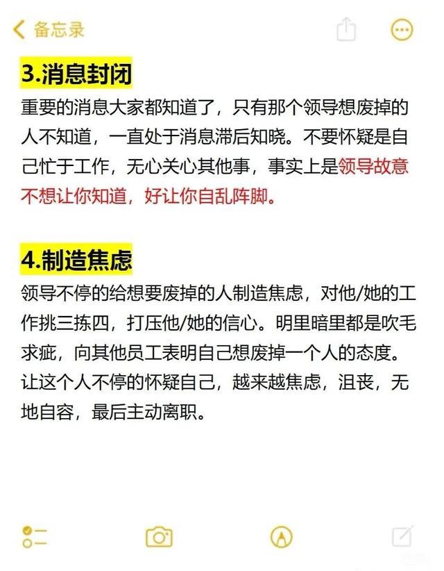 在职场这片江湖中,我们怀揣梦想,努力拼搏,期望闯出一片属于自己的天地。然而,有时隐藏在暗处的危机,可能来自于意想不到的高位 —— 高段位的领导。他们深谙职场规则与人心弱点,若心怀不轨,欲打压排挤你,手段往往隐蔽而狠辣。以下这 6 招,便是他们惯用的 “伎俩”,了解这些,如同给自己穿上一层 “职场铠甲”,能在复杂局势中及时洞察、巧妙应对,守护自身职业发展之路。