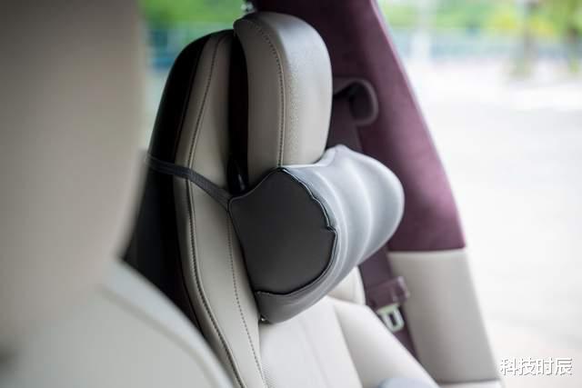 先看一下头枕,它这个头枕左右两侧有专门保证护颈不歪头的设计,中间突出的位置是为了支撑颈椎。反正我头靠上去之后,只要调整位置得当,它可以更好的承托住颈部的后方。不像原本的汽车座椅,是头靠到头枕上,然后整个颈部是完全悬空的,没有任何一点承托。